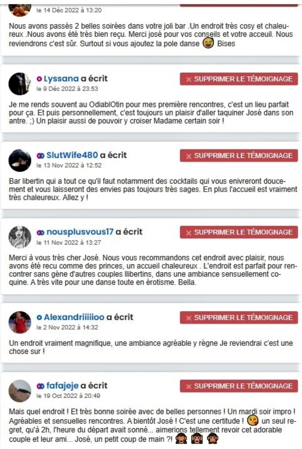 Que cela soit votre première fois ou que vous soyez un habitué, O’diablOtin vous vous sentirez chez vous, protégé et choyé, vous pourrez succomber au confort de son salon coquin, à la convivialité de son bar à cocktails, jouir de l’intimité et vous abandonner à vos fantasmes ludiques.